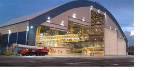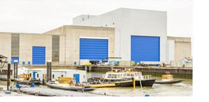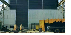 Vrata za montažu na hangarima su idealan izbor za zrakoplovstvo, rudarstvo i brodograđevnu industriju. Praktički bez ograničenja dimenzija ili konfiguracija, zavjesna vrata za hangare su idealan izbor za zatvaranje masivno izvedenih otvora.